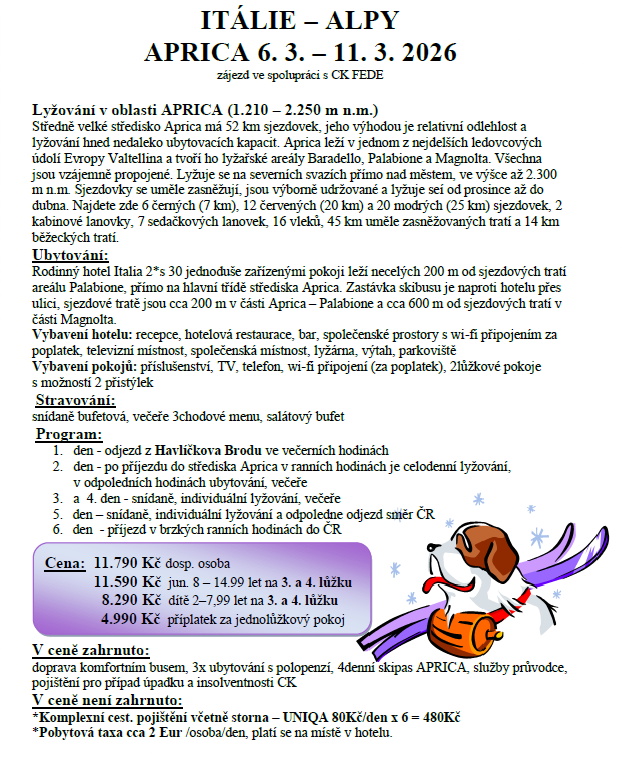 ený lyžařský zájezd